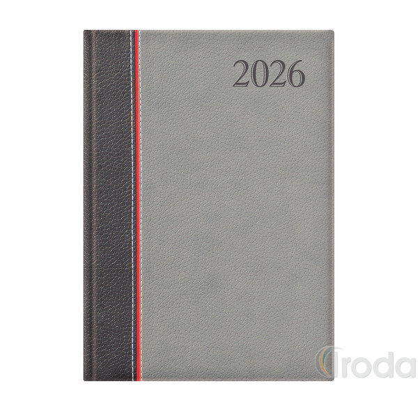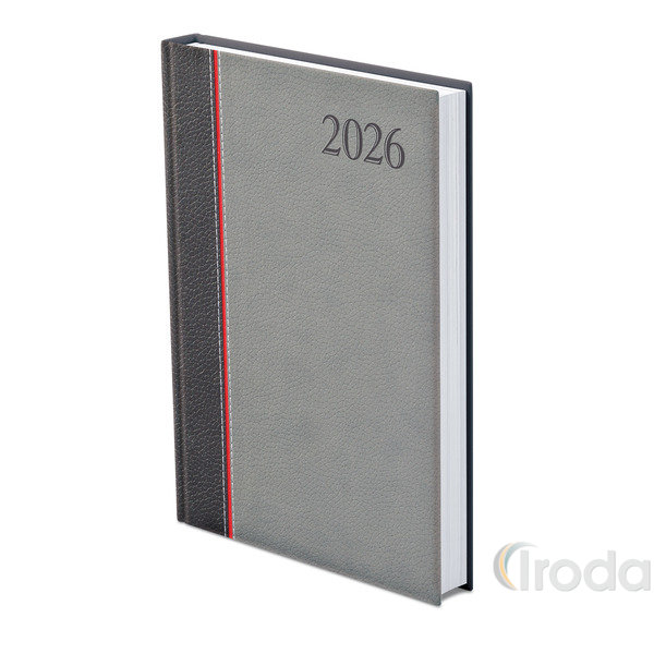 Agenda A5 napi Top Timer Groovy antracit-piros-szürke borítóval, fehér lap 2026.év