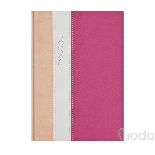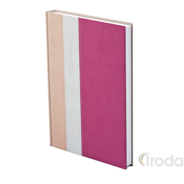Agenda B5 heti Top Timer Fashion RÓZSA-FEHÉR-MÁLYVA borítóval, fehér lap 2026.év
