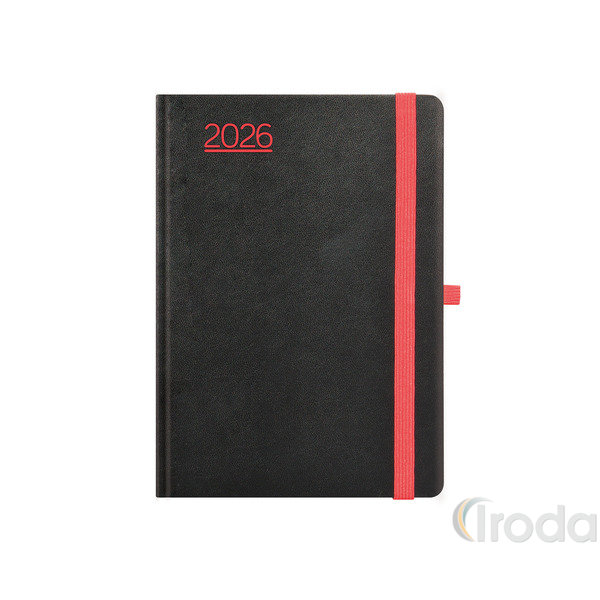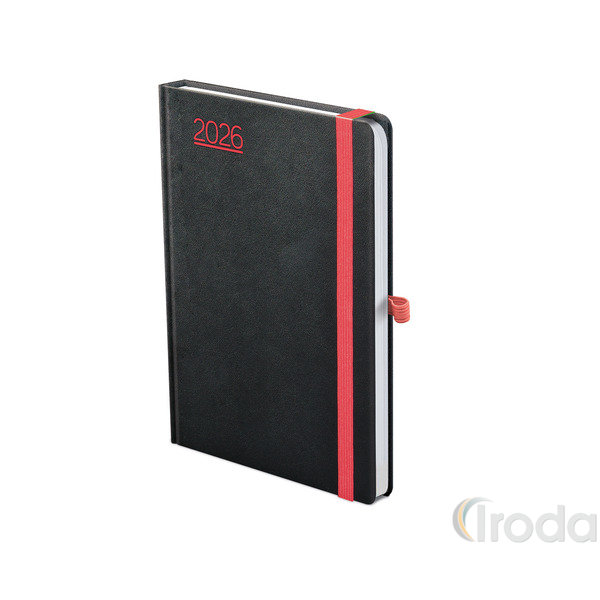Agenda B6 heti Top Timer Nero fekete-piros borítóval, fehér lap 2026.év