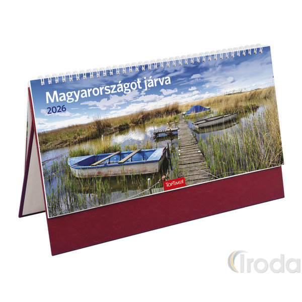 Asztali naptár Top Timer Magyarországon járva, fehér tömbös, álló, bordó műbőrrel bevont karton hátlappal, 325x155mm, 2026.év