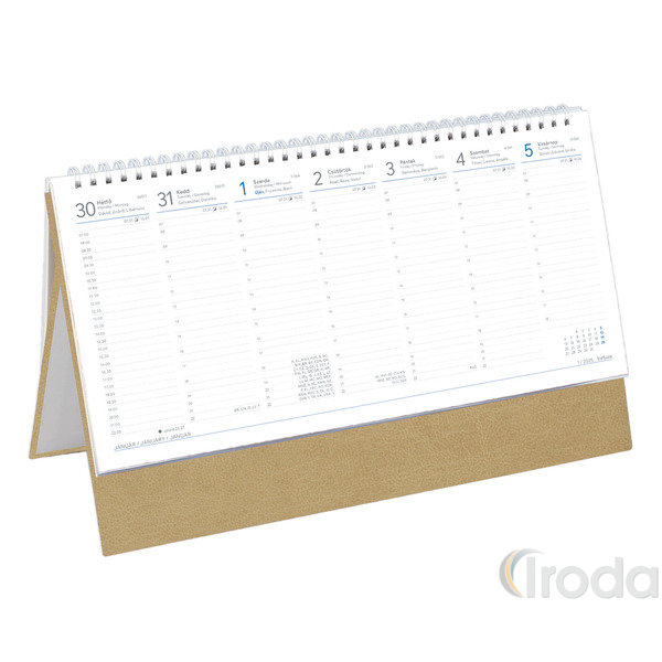 Asztali naptár Top Timer T051 fehér tömbös, álló bézs műbőrbevont karton hátlappal, félórás beosztás, 325x155mm 2026.év