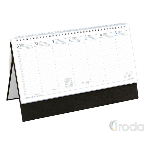 Asztali naptár Top Timer T051 fehér tömbös, álló fekete műbőrbevont karton hátlappal, félórás beosztás, 325x155mm 2026.év