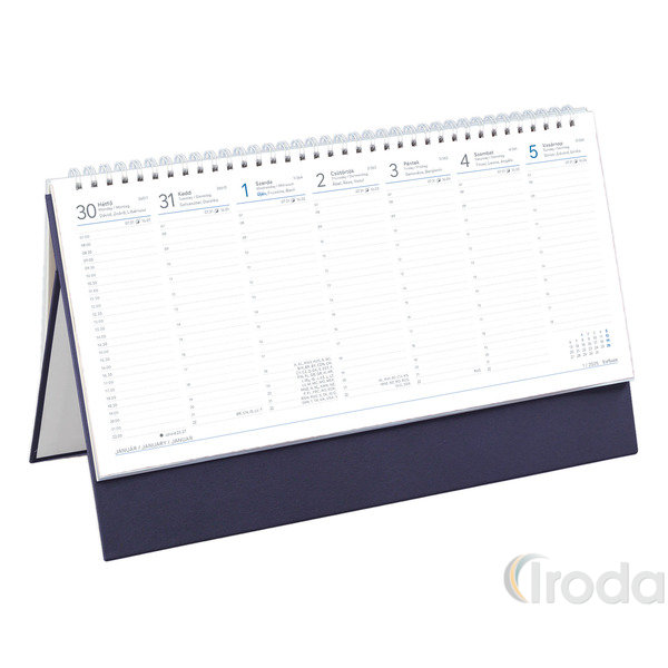 Asztali naptár Top Timer T051 fehér tömbös, álló kék műbőrbevont karton hátlappal, félórás beosztás, 325x155mm, 2026.év