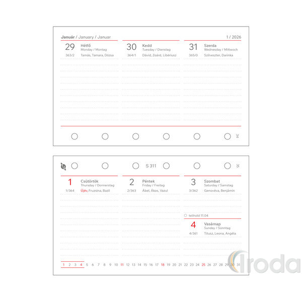 Betétlapcsomag gyűrűs kalendáriumhoz HETI -S311/F FEHÉR SATURNUS, 2026.év