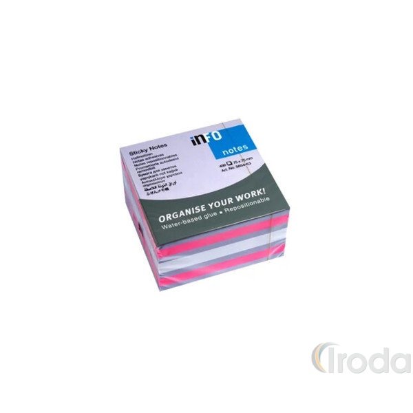 Jegyzettömb InfoNotes öntapadós, 75x75 mm, 450 lap, pasztell színek (pink, fehér,lila)