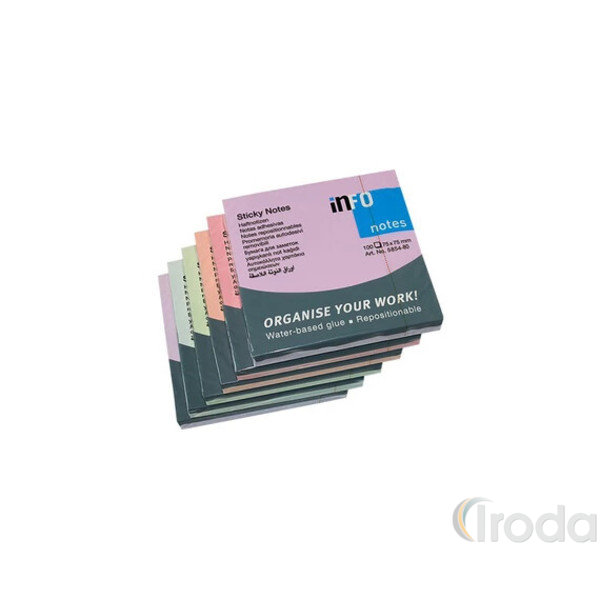 Jegyzettömb InfoNotes öntapadós, 75x75 mm, 6x100 lap, HARMONY (lila, sárga, zöld, kék, barack, rózsa )