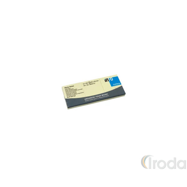 Jegyzettömb InfoNotes öntapadós 40X50 mm 3x100 lap sárga
