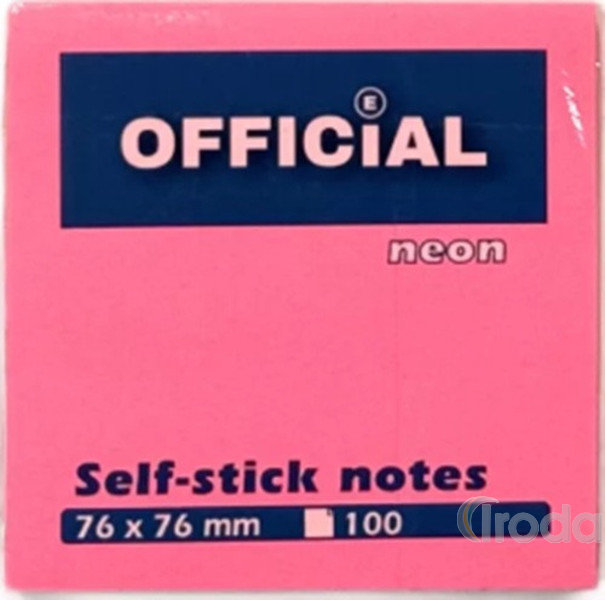 Jegyzettömb OFFICIAL öntapadós 76x76 mm 100 lap neon rózsaszín