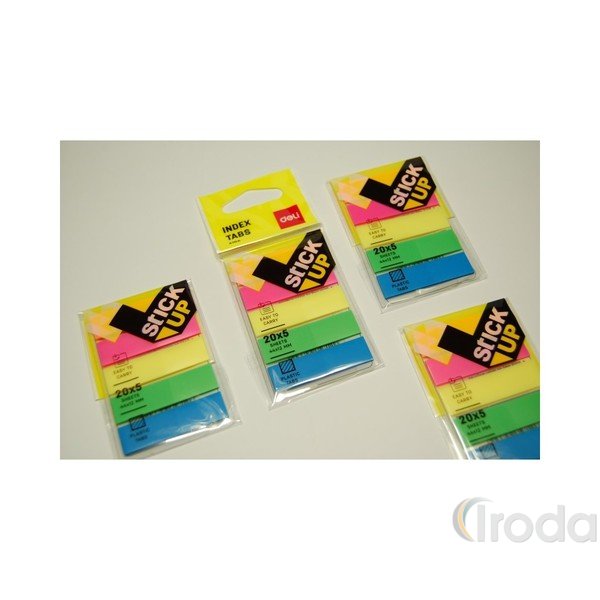 Jelölőcímke, műanyag, 5x20 lap, 44x12 mm, DELI Stick UP, neon színek