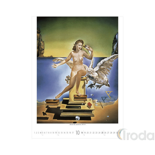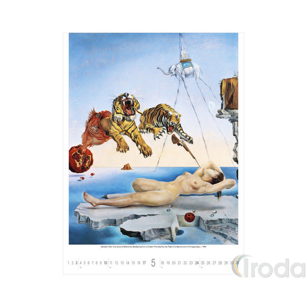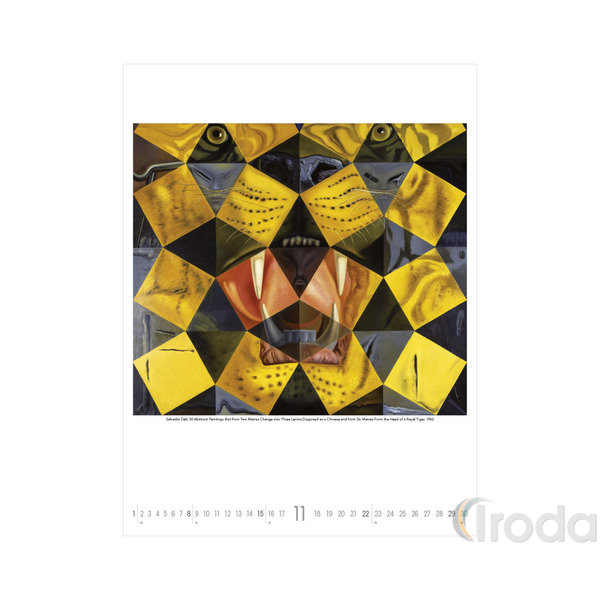 Dalí szürreális, provokatív művészete a falinaptárban is garantáltan felkelti az érdeklődést. Az olvadó órák, az elefántok és a különös alakzatok mind-mind a művész egyedi világát idézik.