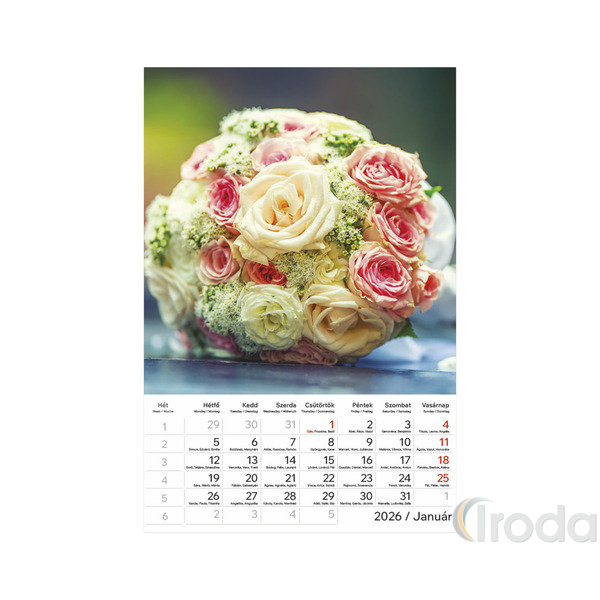 13 lapos, 220x325 mm, Magyar naptárhálóval
