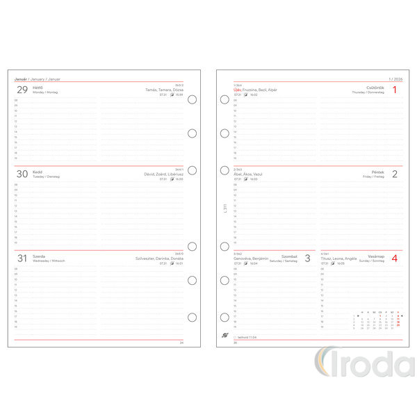 Saturnus betétlap naptárcsomag gyűrűs kalendáriumhoz L311/F heti, fehér, 2026.év