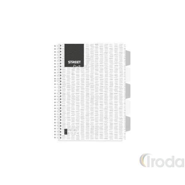 Spirálfüzet regiszteres Projektbook STREET A4 S.PAD WHITE perforált,100lap,duplaspirál vonalas