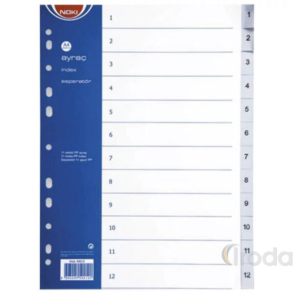 Számregiszter műanyag A4, 1-12