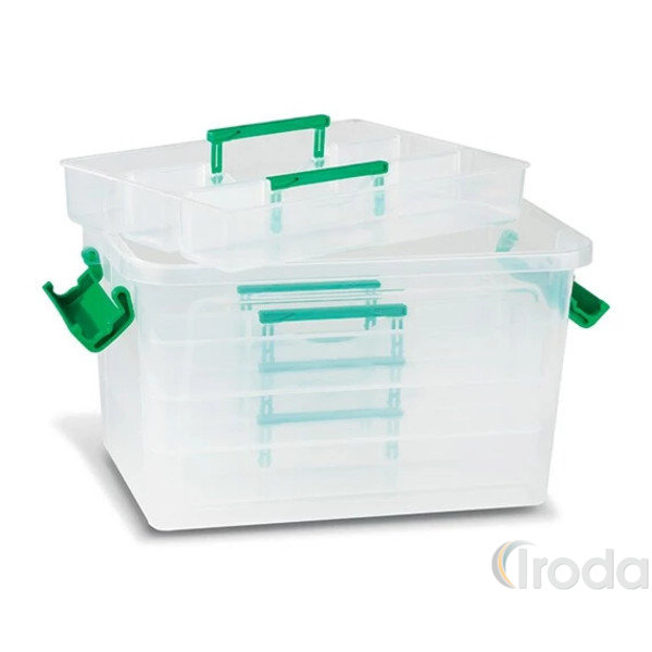 Tárolódoboz PRIMO 25,5x17x14,5 cm, műanyag, 4 db elválasztó tálcával
