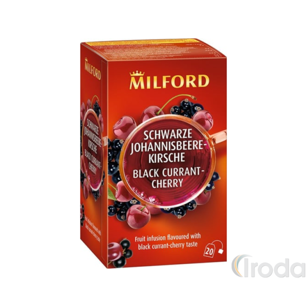 Milford fekete ribizli-cseresznye ízű gyümölcstea, 20 darab tasakos teafilter.