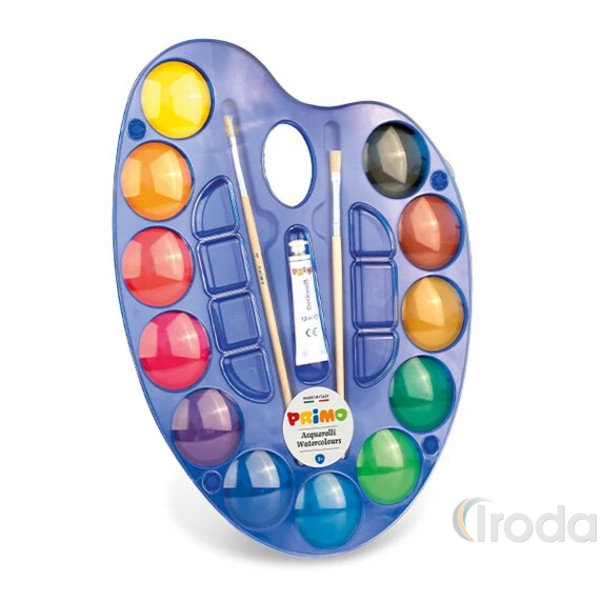 Vízfesték PRIMO 102A12TOM 12x ? 44 mm, + paletta + 2ecset + tempera