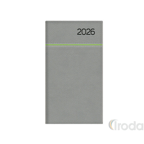 Zsebnaptár Top Timer Young heti szürke-zöld, álló elrendezés, fehér lapok 2026.év